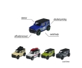 • Contenu – 5 modèles Suzuki Jimny différents (I love my Jimny, Racing, Plage avec planche de surf amovible, Aventure avec coffre de toit et bagage amovible, Camouflage)