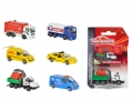 Cet assortiment de véhicules en métal à roue libre regroupe des reproductions des véhicules de ville : camion benne, camion recyclage, camion citerne, véhicule utilitaire de transport express, fourgon électricité.
