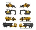 Ce grand coffret se compose de 4 modèles de véhicules de chantier à roue libre sous licence Volvo : pelleteuse, chargeuse sur pneus, dumper, et camion benne.